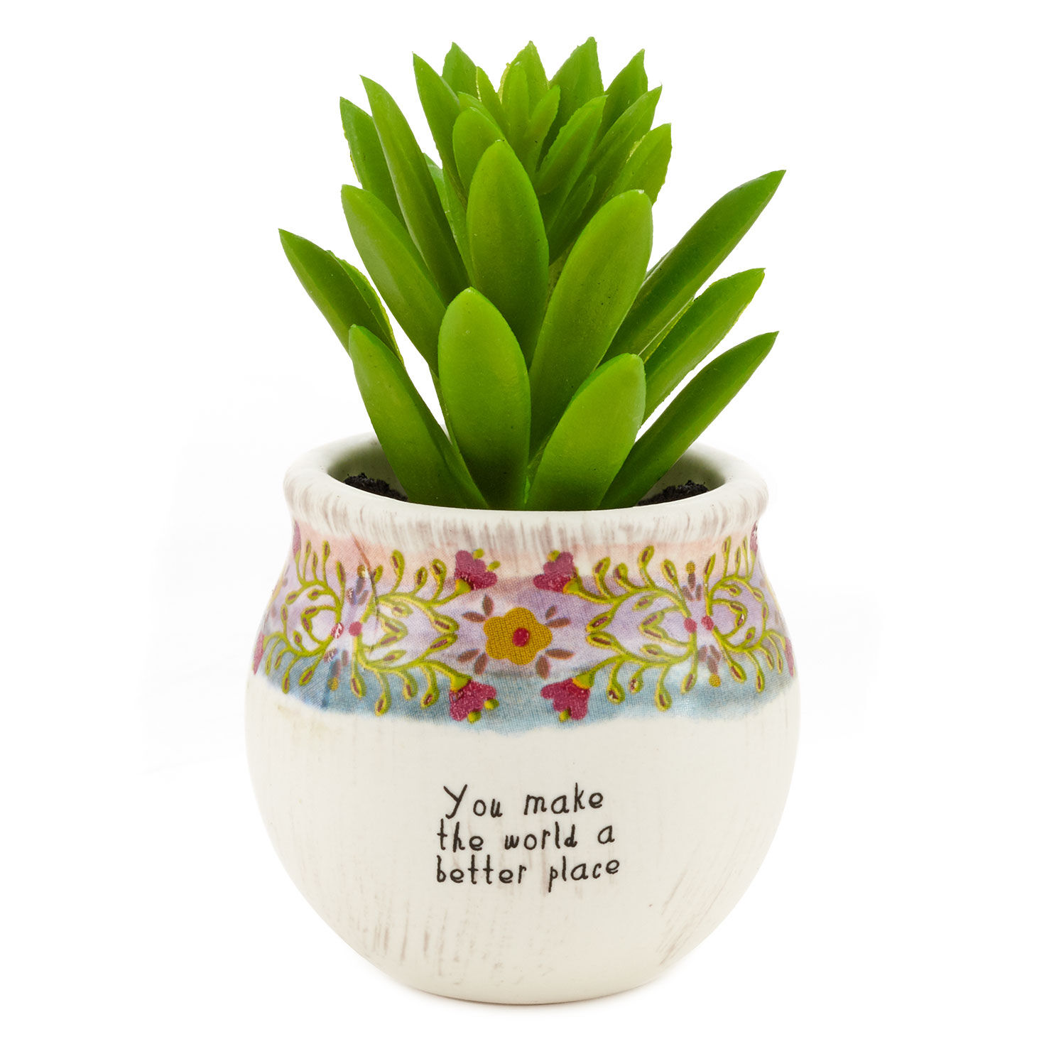 Natural Life Faux Succulent Make The World Better Mini Planter 2 Garden Artificial Plants Hallmark